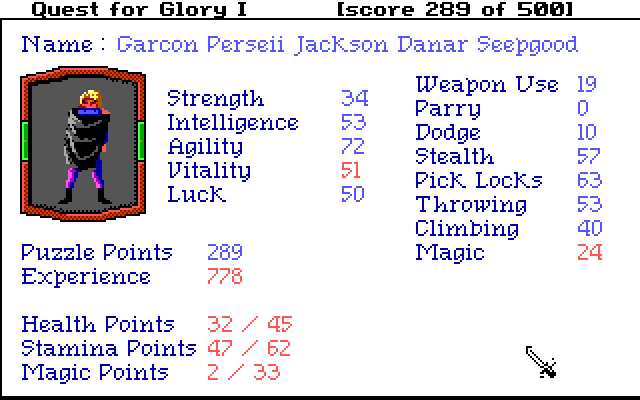 And with that this let's play comes to an end! Thank you for reading along. Next week I'll be starting the sequel to QFG1, Quest for Glory 2: Trial by Fire. A fabulous game that expands on the the base QFG1 provided and expanding it with some wonderful storytelling, a fantastic setting, and a great sense of humor!